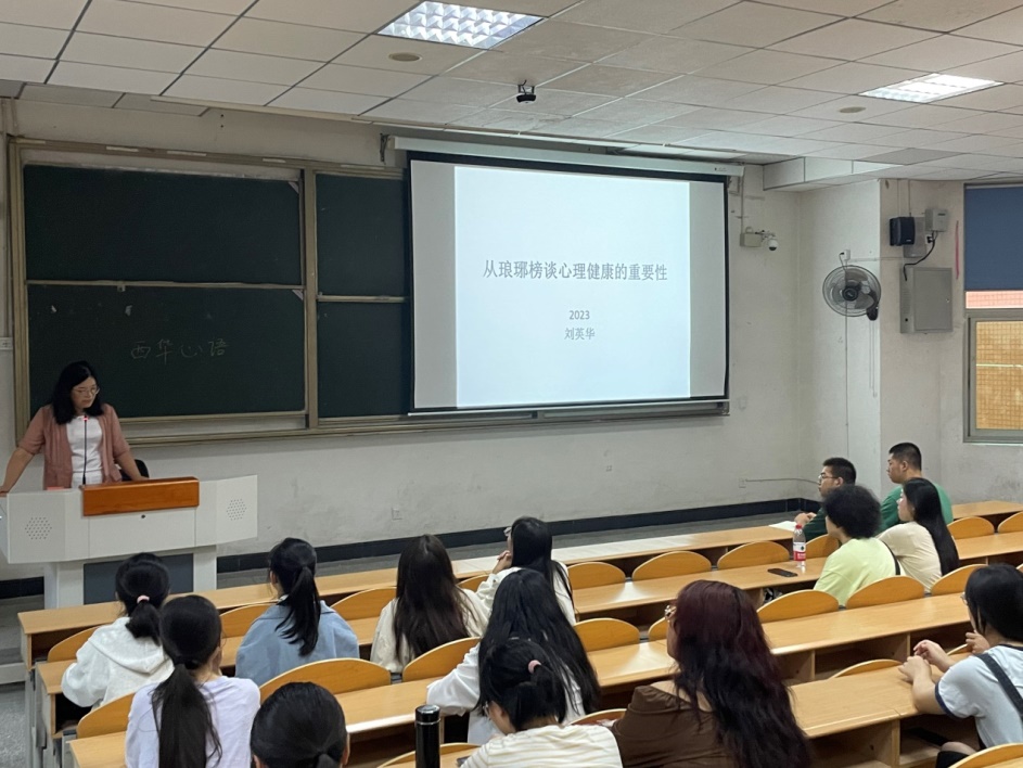 9月11日,心理中心老师刘英华为2023级心理学、健康服务与管理两个专业共计145名新生开展了题为《从琅琊榜谈心理健康的重要性》的心理健康讲座。