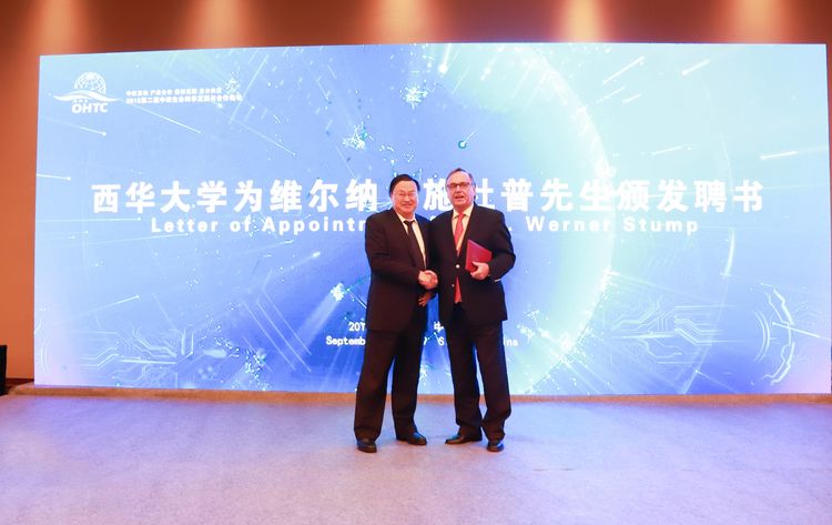 本次论坛主题为: 中欧互动 产业合作 集群发展。论坛中,李传林为德国莱茵健康协会前会长、德中工业与生命科学研究院有限公司董事总裁、欧盟国际外交协会执委会副主席、德国对华经济技术合作中心主席维尔纳·施杜普颁发聘书, 聘任他为西华大学betway西汉姆联平台客座教授。