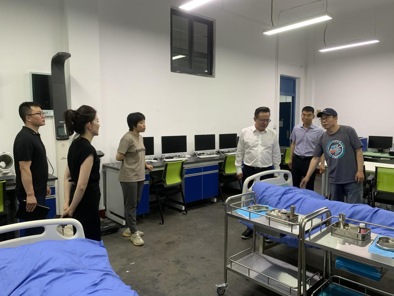 朱兴华一行先后实地调研了学院实验室、各办公室,了解学院各方面情况。