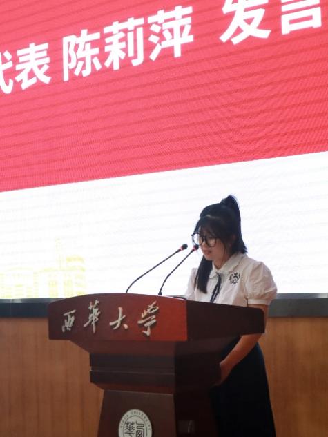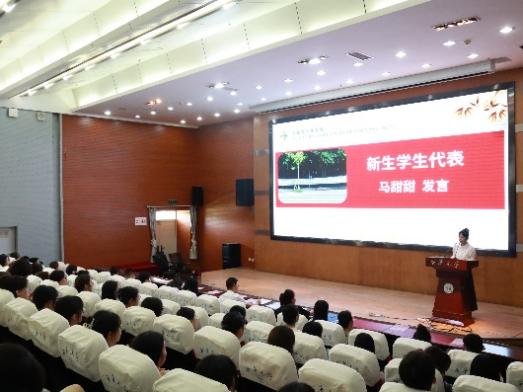 2024级健康服务与管理专业马甜甜同学代表全体新生,对学院筹备本次开学典礼的领导老师表示感谢,对成为西华大学大健康学院的一份子表示欣喜,代表全体新生做出了有理想,肯担当的青春誓言。