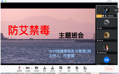 我院在各班级开展以“防艾禁毒”为主题的网络班会,辅导员宣传有关艾滋病的知识,向学生们强调了毒品的危害和防艾的重要性,引导他们做到远离毒品和HIV病毒。