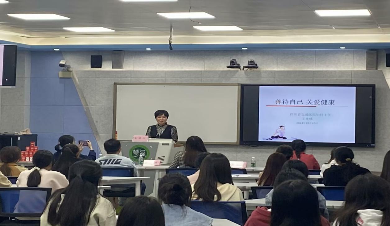 讲座伊始,刘凤丽书记首先代表学院对四川省交通医院的嘉宾表示欢迎,为各位同学介绍了开展本次健康知识讲座的初衷,希望同学们珍惜与嘉宾的相处机会,认真聆听讲座。接着,王光咏副主任以“善待自己,关爱健康”为切入点展开了对关爱妇女的分享。王副主任对女性的生殖器官,生命的各个时期等方面进行讲解,向同学细致地描述了女性生理知识应注意的问题,为同学们科普了女性生理期用药与安全避孕措施等知识。同学们全神贯注地聆听,讲座现场气氛热烈。在互动环节,同学们积极提问,纷纷表示对自身健康有了更深入的认识。