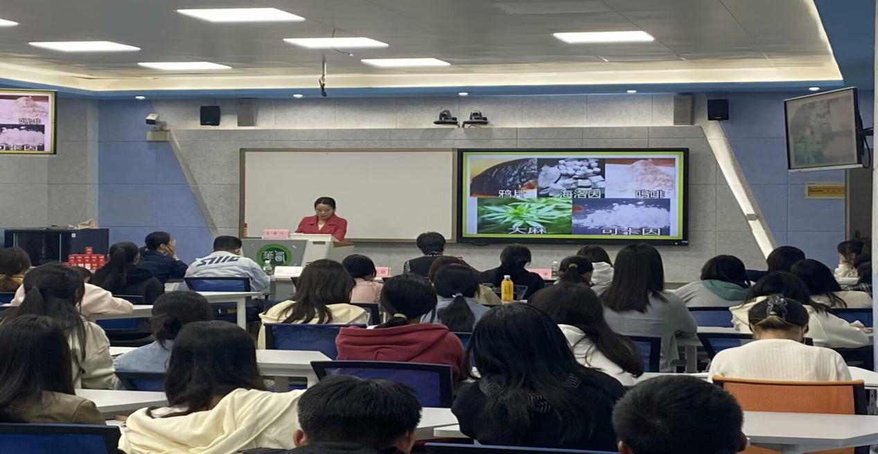随后,讲座聚焦于禁毒、防艾。兰力洪负责人通过展示各种毒品的图片和讲述真实案例,向同学们介绍了毒品的种类、危害以及如何远离毒品。紧接着,兰负责人深入浅出地介绍了对艾滋病的简单认识和预防方法,同时在同学们提出的问题中科普艾滋病的防范阻断,让同学们了解到艾滋病虽然可怕,但只要掌握正确的预防方法,就可以有效避免感染。