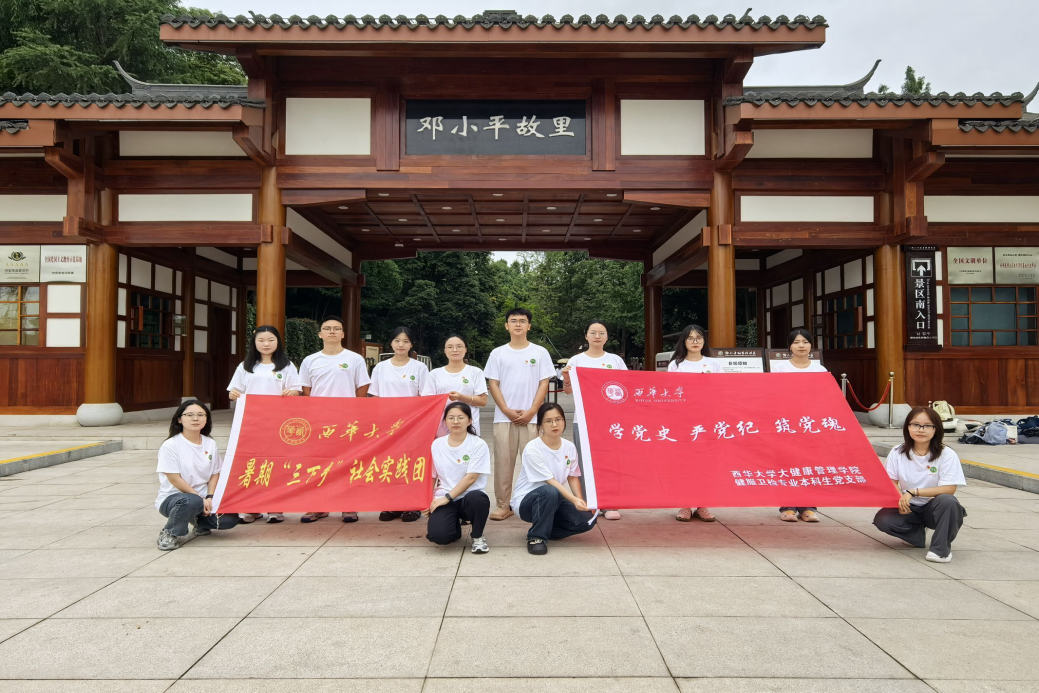 7月4日下午,西华大学追寻者队“三下乡”团队踏上前往广安市的征程,来到邓小平同志的故居,聆听一代伟人的故事。跟随讲解员的步伐,伴随着美好与宁静,追寻者们来到了邓小平铜像前,预备党员们在讲解员的引导下,面对着党旗重温了入党誓词。