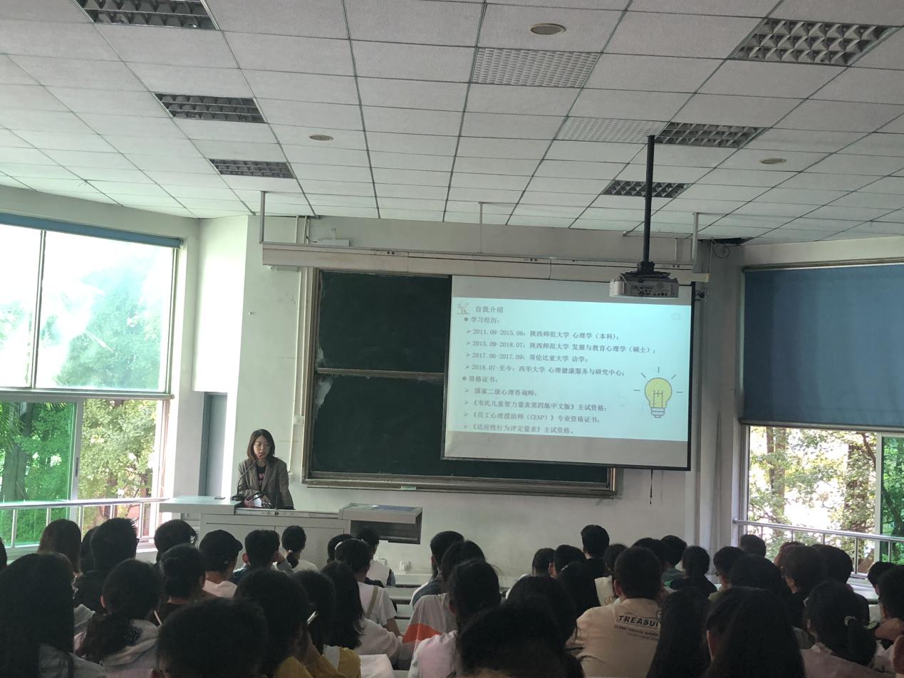 心理健康服务与研究中心老师陈媛以“做一个幸福的西华人”为主题,通过真实案例向同学们强调了心理健康的重要性。