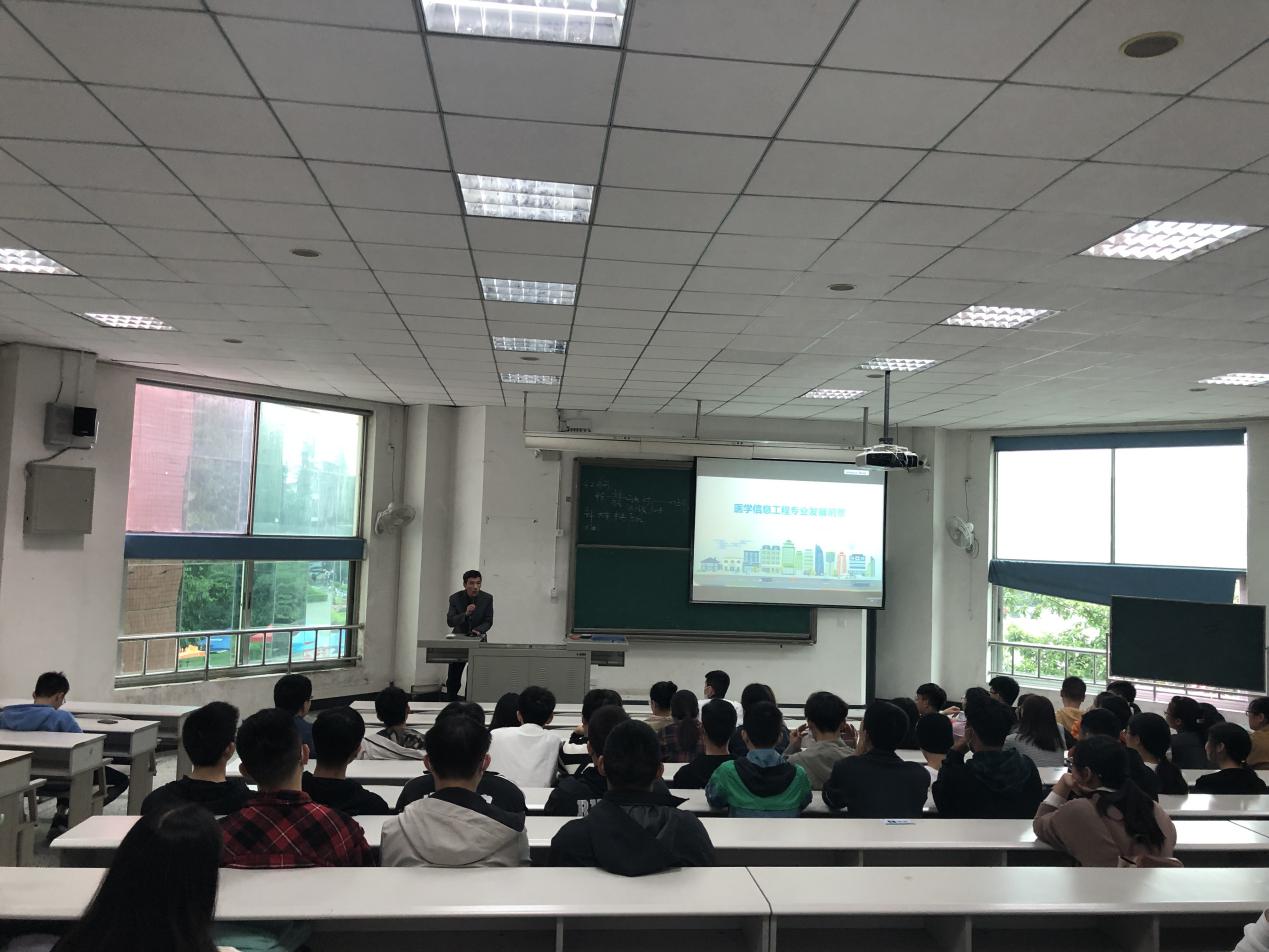 图为李成军教授进行专业认知教育