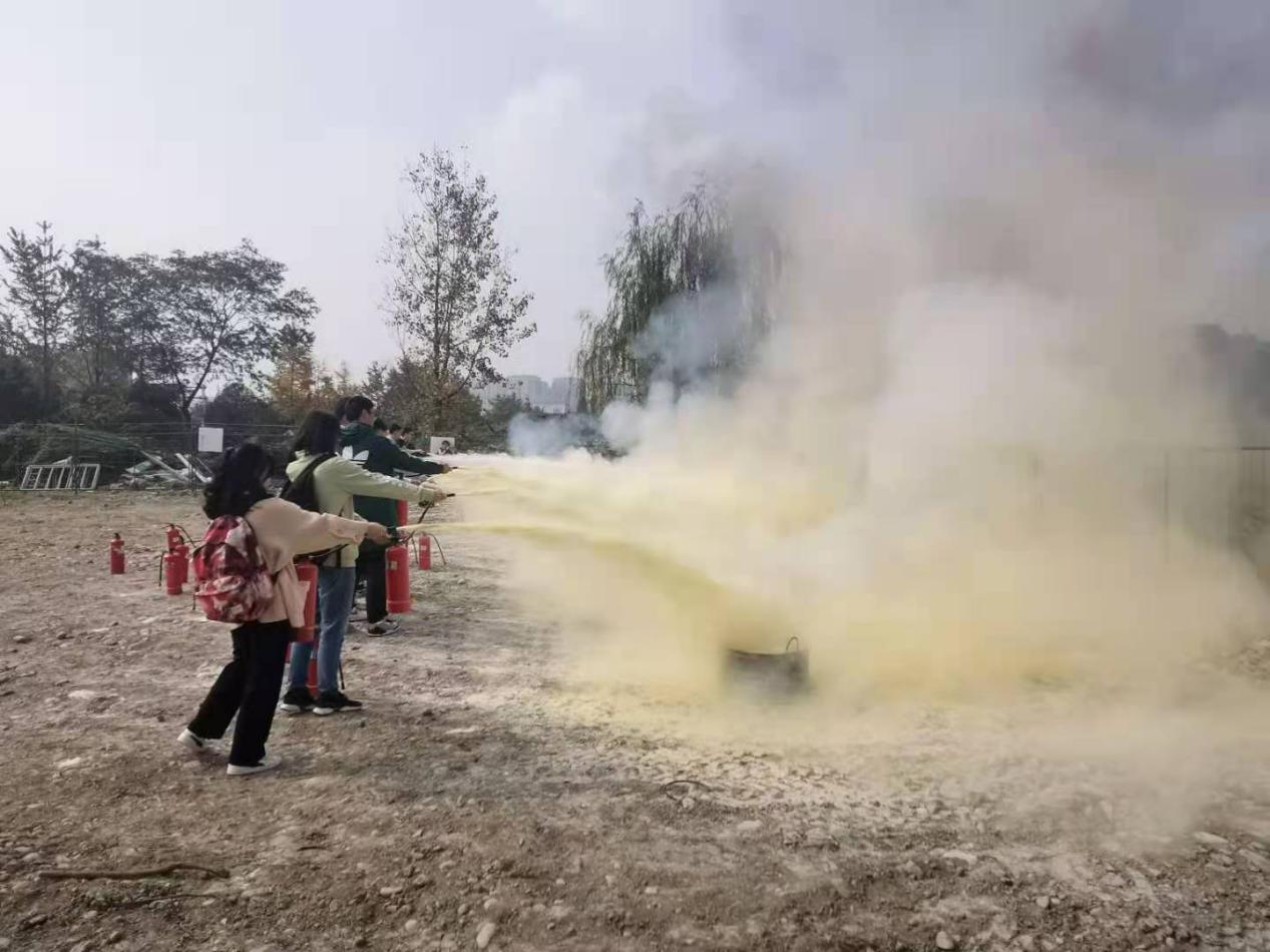 讲座后,曾教官带领大家来到了西华大学消防演练场(东门)进行灭火实操演练。演练前,曾教官再次强调使用干粉灭火器的注意事项,一定要记住动作要领,安全的进行实操演练。最后在曾教官的带领下每一位同学都亲身进行了灭火演练,掌握了干粉灭火器的使用要领。