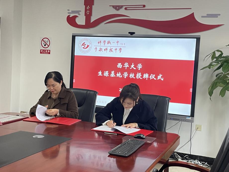 随后与校长刘莉、常务副校长张坤均进行西华大学—科学城一中优质生源地签约授牌。