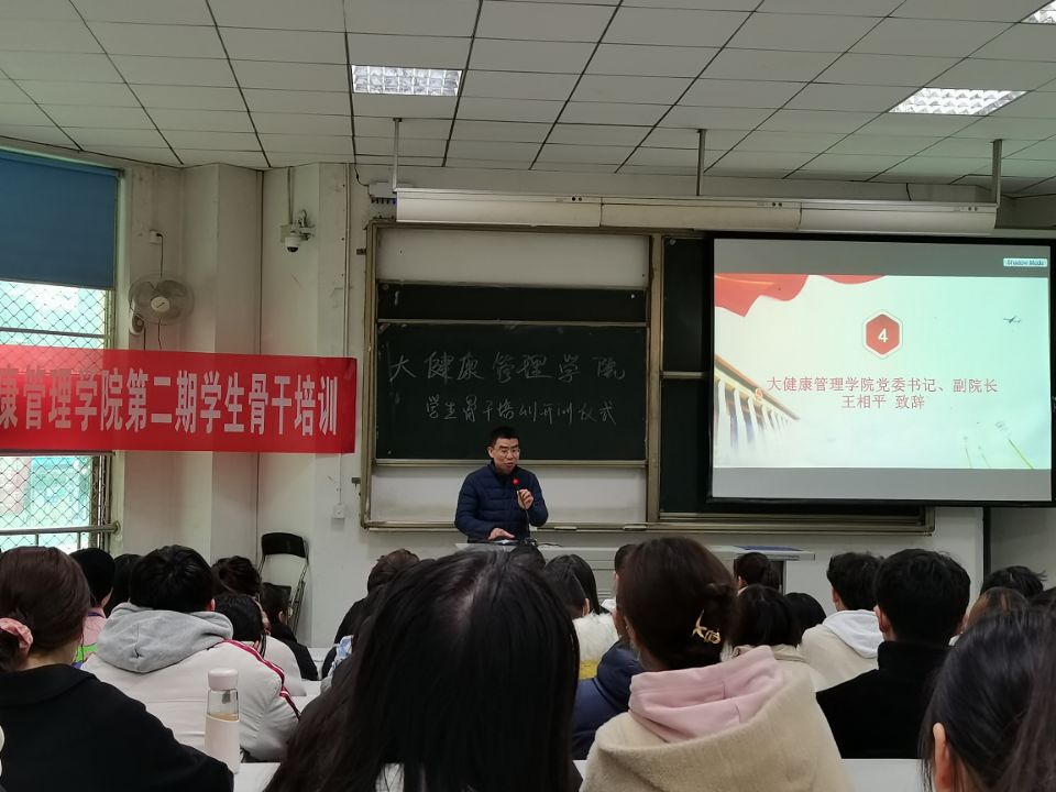 为进一步加强我院学生干部的集体凝聚力和自身队伍建设,提高学生干部的思想政治素质、工作能力和创新能力,培训出一支素质高、作风好、能力强的学生干部队伍。我院于12月2日,在4A-107举办学生骨干培训开训仪式,此次仪式由组织部部长李文静主持,出席领导有学院党委书记、副院长王相平,团委指导老师余梦玲,学生会全体成员及各班班长、团支书。