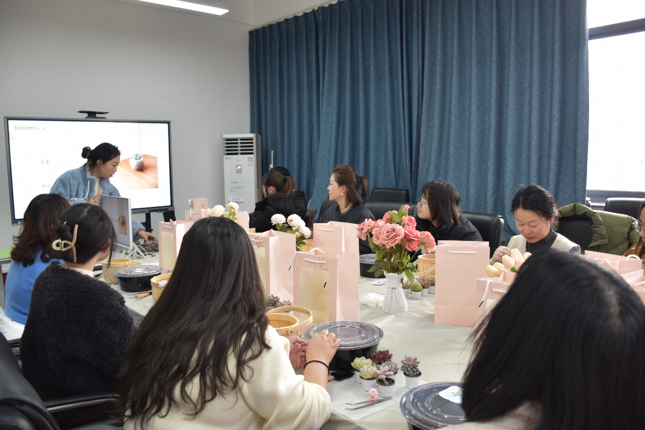 为庆祝第115个“三八”国际劳动妇女节,3月6日下午,学院工会在一教6007举办“巧手植春色·多肉寄温情”多肉花篮手工活动,10余名女教职工代表齐聚一堂,在手工创作中共度春日美好时光。