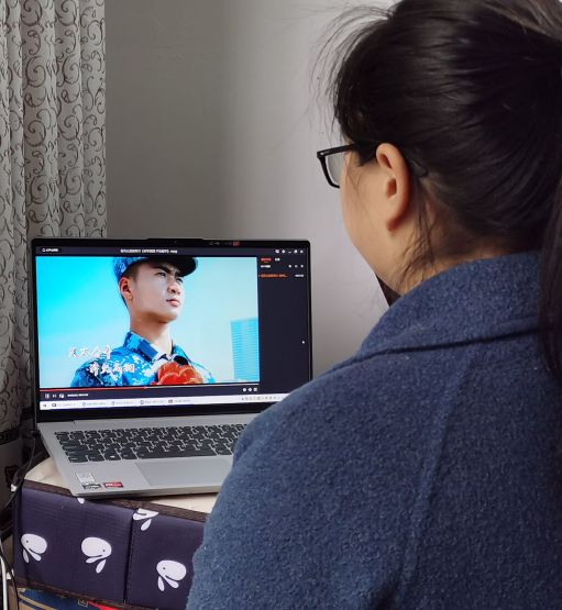 图为我院学生观看征兵宣传片