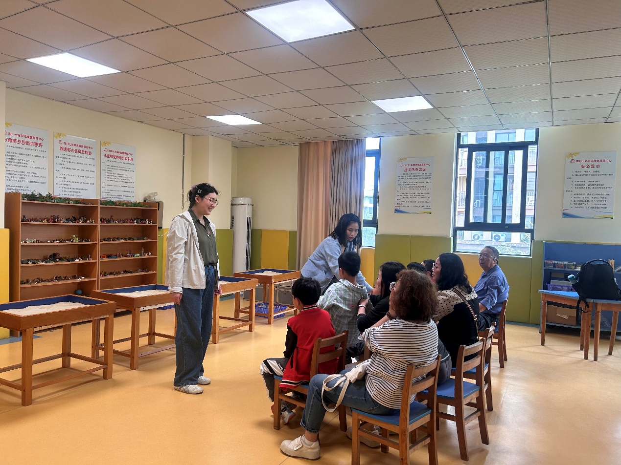 高倩云和张竞文一行人首先参观了该校的心理治疗室、沙盘游戏室以及团体沙盘游戏。随后,与金牛区特殊教育学校的心理老师汪虹伶,围绕沙盘游戏治疗在特殊教育中的应用技巧、学校心理健康教育体系的构建与完善、以及心理学专业学生在特殊教育领域的就业实习等话题进行了深入交流。