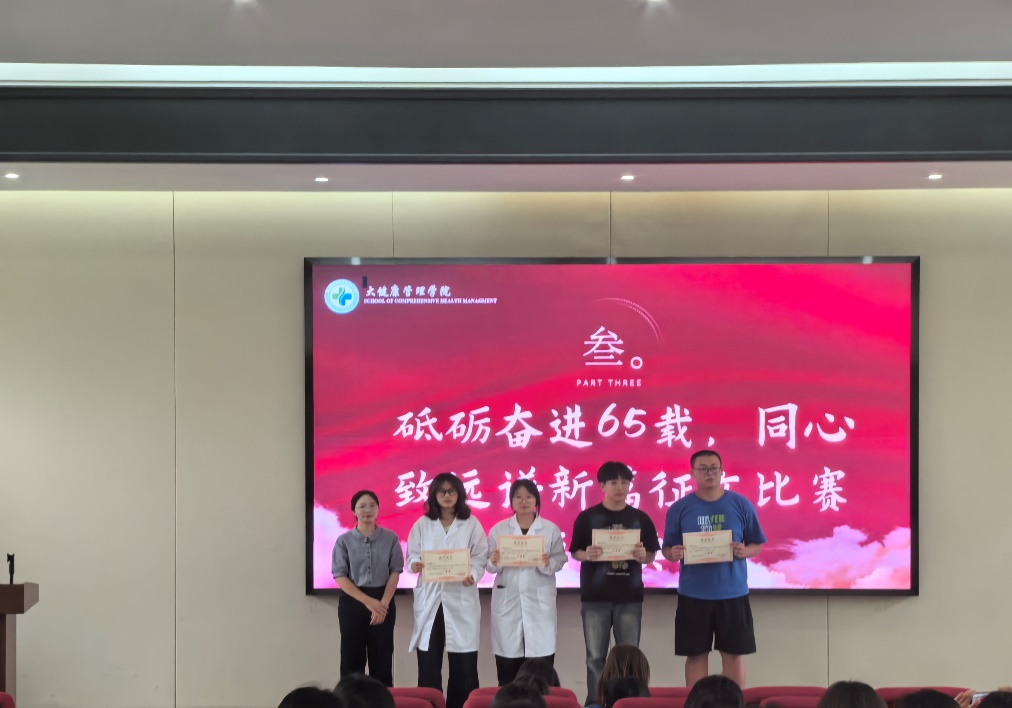 作为校庆系列活动之一,学院举办“砥砺奋进65·同心致远谱新篇”主题征文比赛。活动中,三位校友为获奖同学颁发证书并合影留念。征文作品以真挚笔触回顾学校发展历程,抒发了青年学生对母校的深切祝福与使命担当。