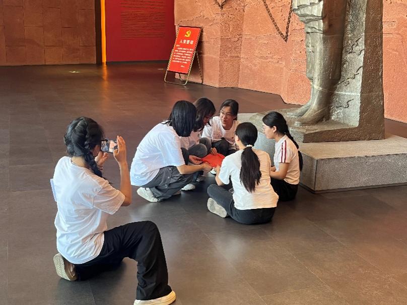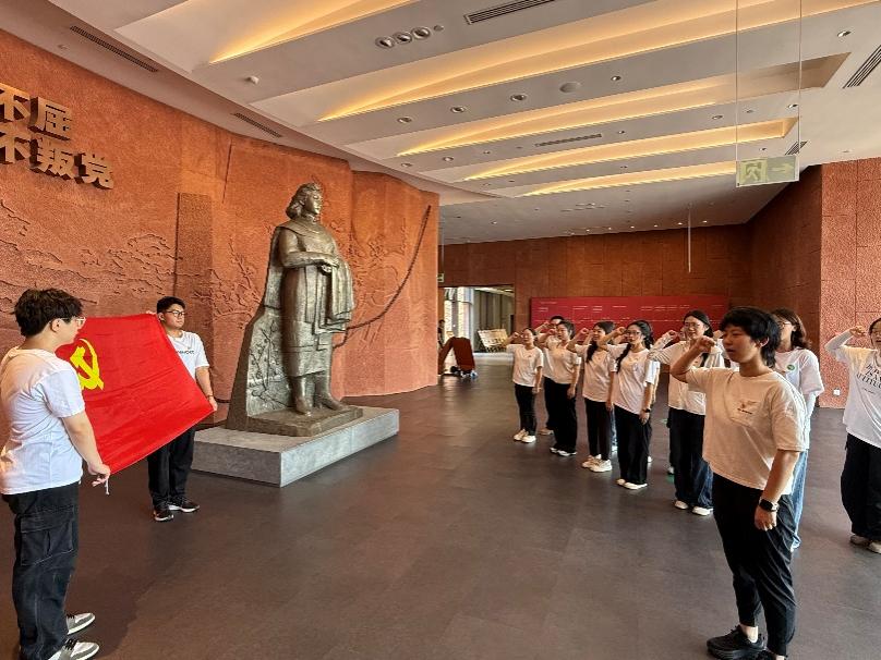 下午,支部奔赴自贡江姐故里,开启信仰淬炼之旅。在七一建党节临近之际,支部书记涂爽领誓,全体党员面向党旗重温入党誓词。“我志愿加入中国共产党……”铿锵有力的誓言仿佛与江姐等先烈的信仰隔空相和。随后的“寻迹红岩”环节以任务驱动深化学习。党员们手持“寻迹卡”,带着“江姐在狱中如何传递信念”等问题,在参观江姐生平事迹陈列展时主动探寻史料、聆听讲解,将革命精神的理解从“被动接收”转化为“主动解码”,让红色教育更具深度与参与感。