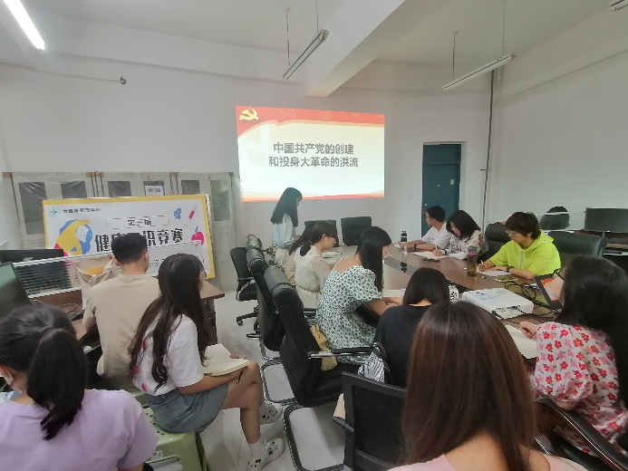 党史学习分享会中,张雪梅、孙诗瑶、杜陈艳同志就“中国共产党的创建和投身大革命的洪流”这一主题进行了分享。其中杜陈艳同志形式独特,以《红色的起点》一书为主,向大家讲述了中国共产党的创立及人物故事。付元柳、曾荣、韦静同志则围绕学习主题“掀起土地革命的风暴”进行了分享,使学生党支部党员对这段历史有了更深刻的理解。随后,其他学生党员纷纷交流各自的学习体会,程志宝同志说到:我们党在建立的过程中历经挫折与磨难,我们应始终不忘初心,脚踏实地,尤其是面对纷繁复杂的网络世界,更要实事求是,紧跟党组织。最后,学生党支部书记涂老师对本次分享会进行了总结,她提到围绕百年党史中的重要人物、重大事件、重要时期等关键知识点的学习,应不拘泥于形式,采用丰富的方式去学习并充实自己,真正了解中国共产党波澜壮阔的百年历史,并在学习工作生活中充分发挥党员示范和引领作用。