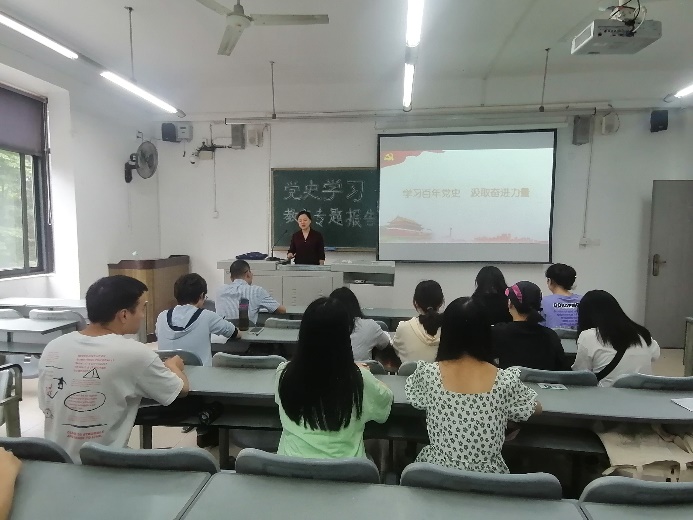 王海容老师从中国共产党为什么能建立新中国、为什么能收拾好国民党留下的烂摊子、为什么犯过严重错误还能得到人民的支持三个方面讲述了中国共产党的百年奋斗历程。报告会上她说到,未来可期,希望我们每一位青年党员都能成为建设中国特色社会主义现代化强国的中坚力量。