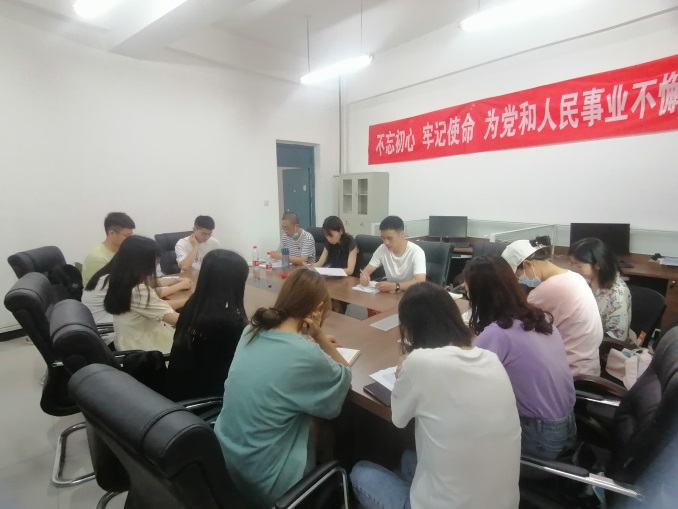 会议全程由程志宝同志主持,首先是程志宝同志代党支部书记涂爽同志进行了党支部年度工作小结,汇报了本学期党支部工作情况特别是开展党史学习教育情况,紧接着,全体党员围绕以下四方面进行了自我剖析和检视:一是围绕习近平总书记在庆祝中国共产党成立100周年大会上的重要讲话,谈学习情况和心得体会;二是围绕习近平新时代中国特色社会主义思想和中央指定学习材料,谈学习情况和感悟收获;三是对照党史学习教育目标要求,找自身存在的差距与不足;四是对照党员先锋模范要求,谈作用发挥情况,立足岗位、履职尽责情况,为身边群众做实事办好事情况,寻找还存在哪些差距。