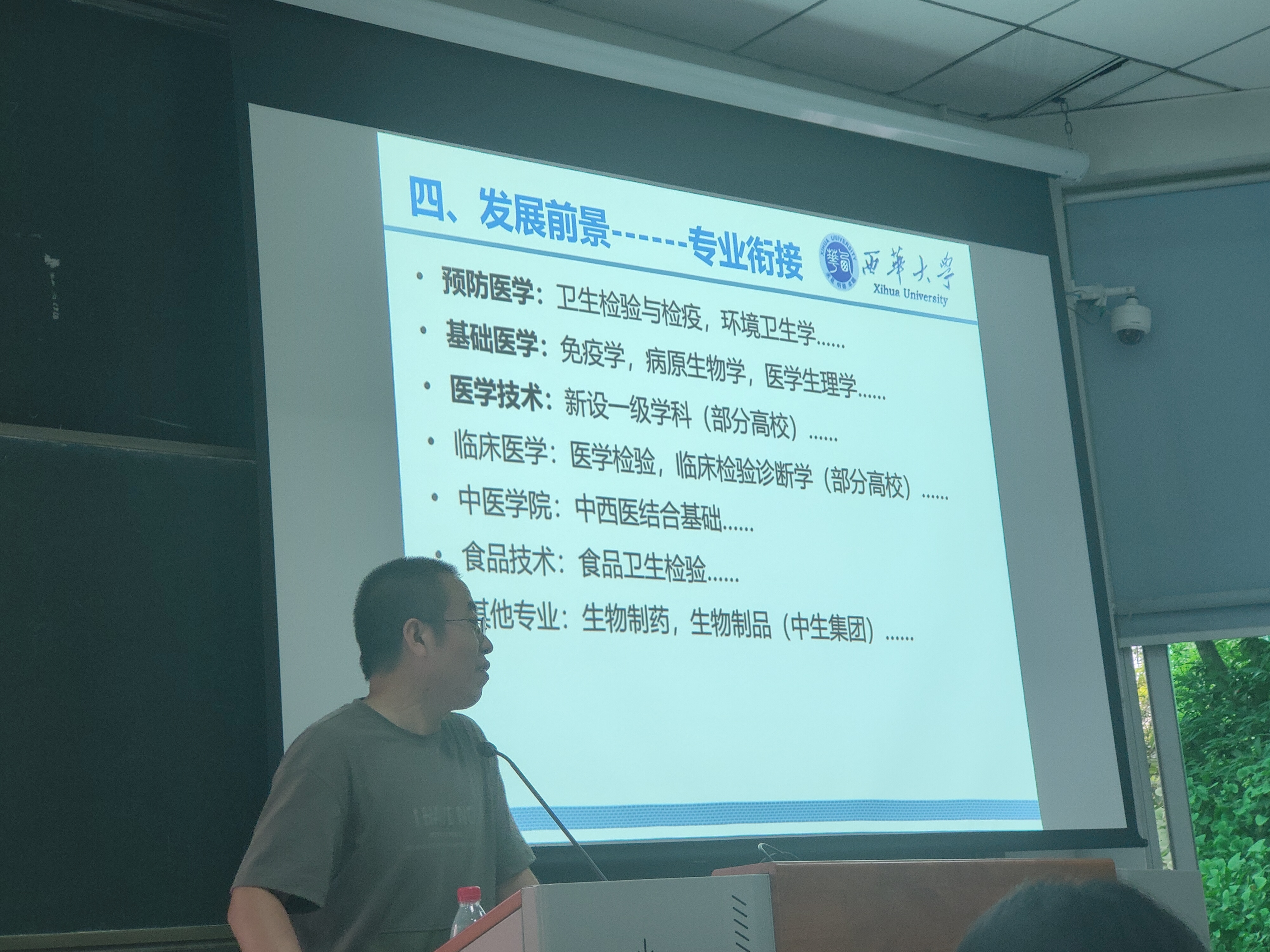 学院特别邀请了特聘院长李成军教授、学院马兴铭教授、心理健康服务与研究中心张又文老师,学院王方和陈凯老师分别给新生进行专业认知教育,为新生们解读健康服务与管理、医学信息工程、卫生检验与检疫和心理学专业发展前景、职业规划及就业去向等相关内容。