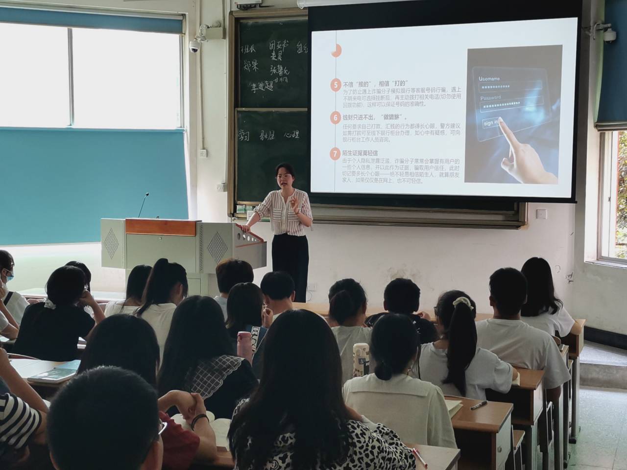 辅导员沈丛微给新生开展了“用心驻大学 青春展芳华”主题班会,就学生工作手册、助学贷款、防疫知识等方面进行了详细的介绍,并仔细讲解了防电信诈骗相关知识,学习了党史,解答了新生们在学习和生活等方面上的困惑。