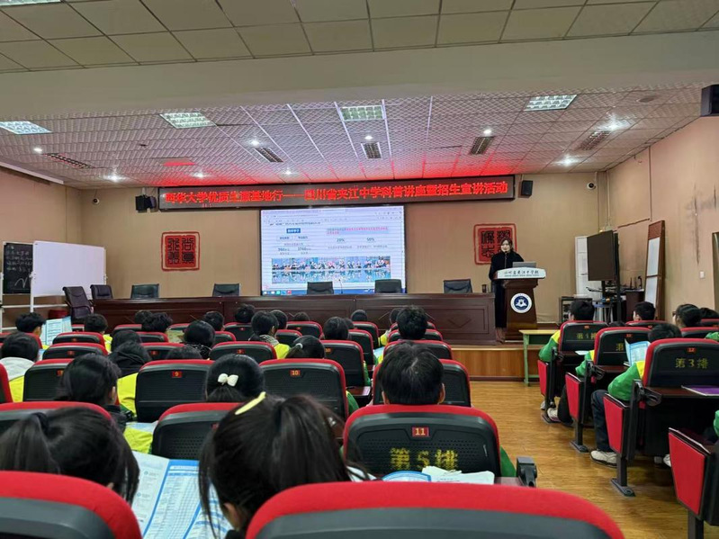11月18日下午,西华大学社会工作与健康管理学院(心理健康教育中心)前往优质生源基地——四川省夹江中学,开展了科普讲座和招生宣讲活动。科普讲座由学院健康管理系系主任、副教授赖世荣主讲,而招生宣讲则由学院党委副书记、副教授刘凤丽主讲。此次活动由四川省夹江中学高三年级主任周丽主持,高三年级的同学们积极参与。