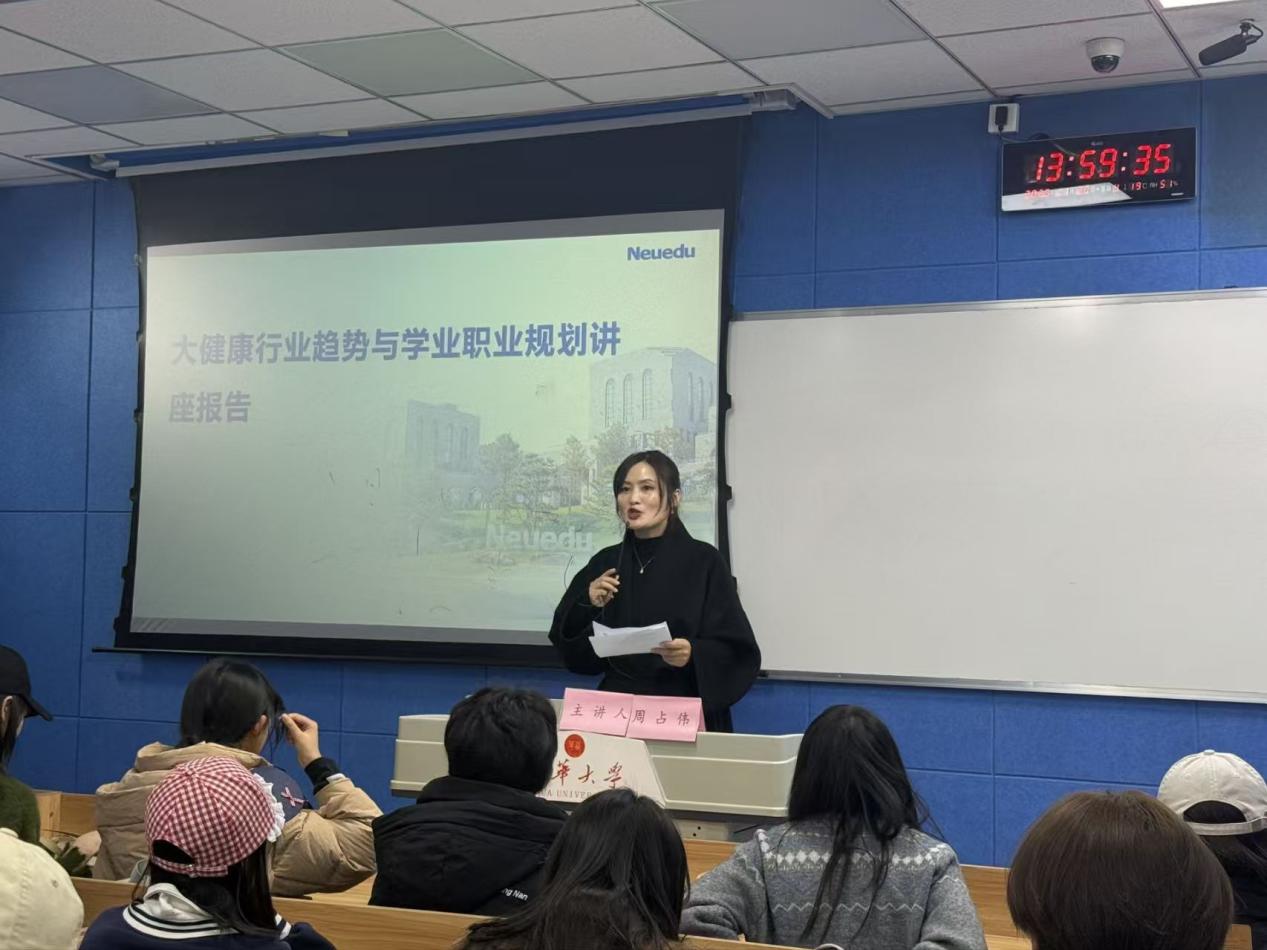 在讲座开始前,学院党委副书记刘凤丽为大家指明此次讲座主题—“洞见大健康趋势,规划学业职业新蓝图”。指出学院举办本次讲座的意义,希望同学们对大健康行业有所认识,有针对性地做好自身职业生涯规划,提升就业竞争能力。