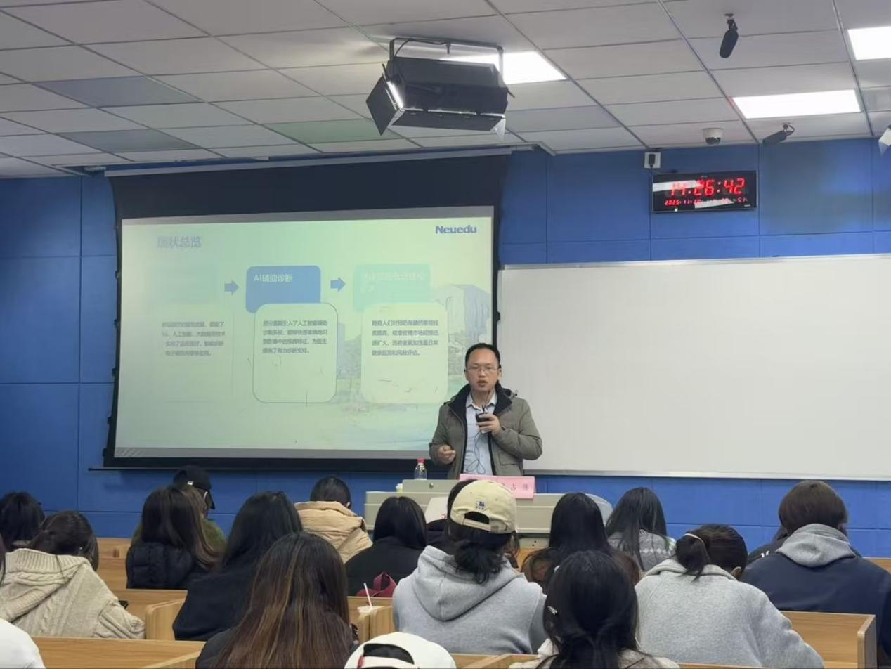 随后,讲座围绕国家政策引导下的行业发展展开。主讲人周占伟系统分析了大健康行业的核心岗位需求,并围绕行业热门岗位要求、求职技巧、职业晋升路径等内容展开分享,引导学生结合自身优势明确职业定位,并通过互动问答环节为学生解答了考研深造、实习选择、跨领域发展等疑问,为同学们的学业职业规划与发展奠定了坚实基础。