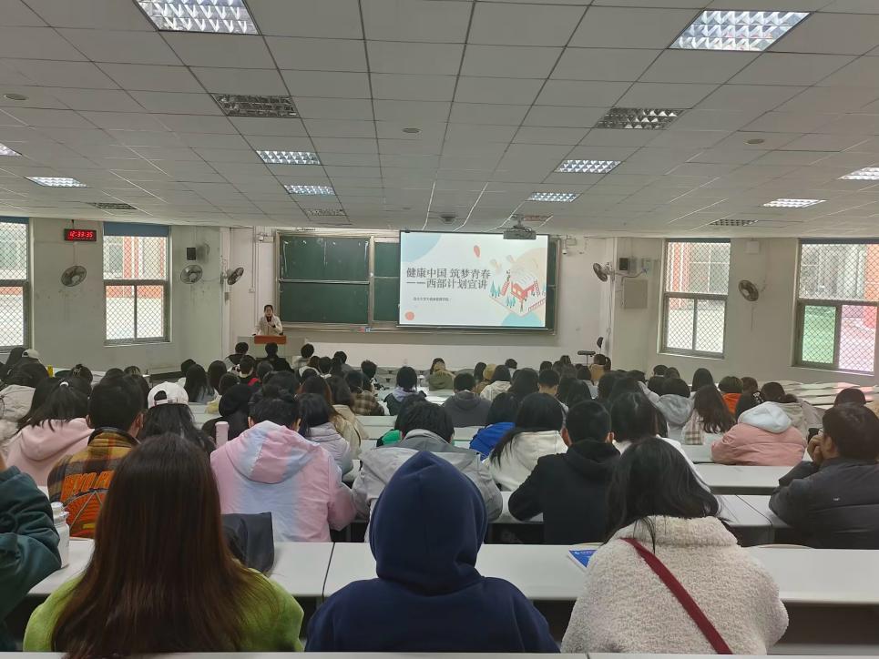 2025年4月18日,西华大学betway西汉姆联平台正式启动2025年大学生志愿服务西部计划(以下简称“西部计划”)的专项宣传与动员工作。学院号召全体心怀家国、志在四方的健康管理相关专业学子,积极把握时代机遇,将专业知识与青春热血相结合,在服务国家战略和基层健康的实践中,实现个人价值与社会价值的统一。毕业班辅导员沈从微老师参与宣讲会。