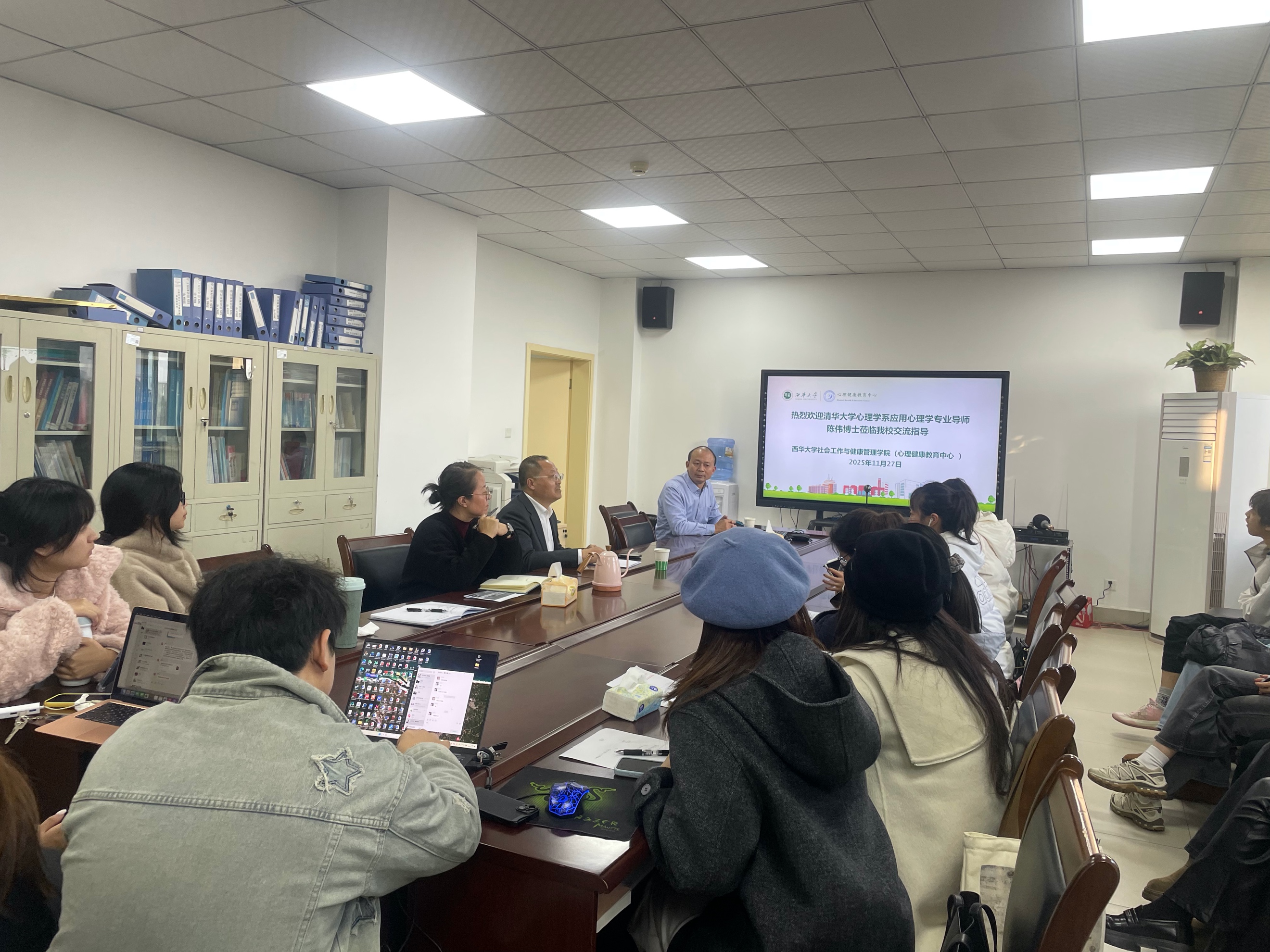 11月27日下午15:00,清华大学心理学系应用心理学专业导师,西华师范大学心理学客座教授,中国心理网CEO、北京心海导航教育科技股份有限公司董事长,四川省教育厅特聘平安校园建设暨安全稳定风险评估专家、中国教育科学研究院培训中心“心理健康与危机干预能力提升”培训项目负责人陈伟于西华大学心理健康教育中心504会议室,作“学生心理危机干预及心理学在学校教育中的应用”的学术报告。