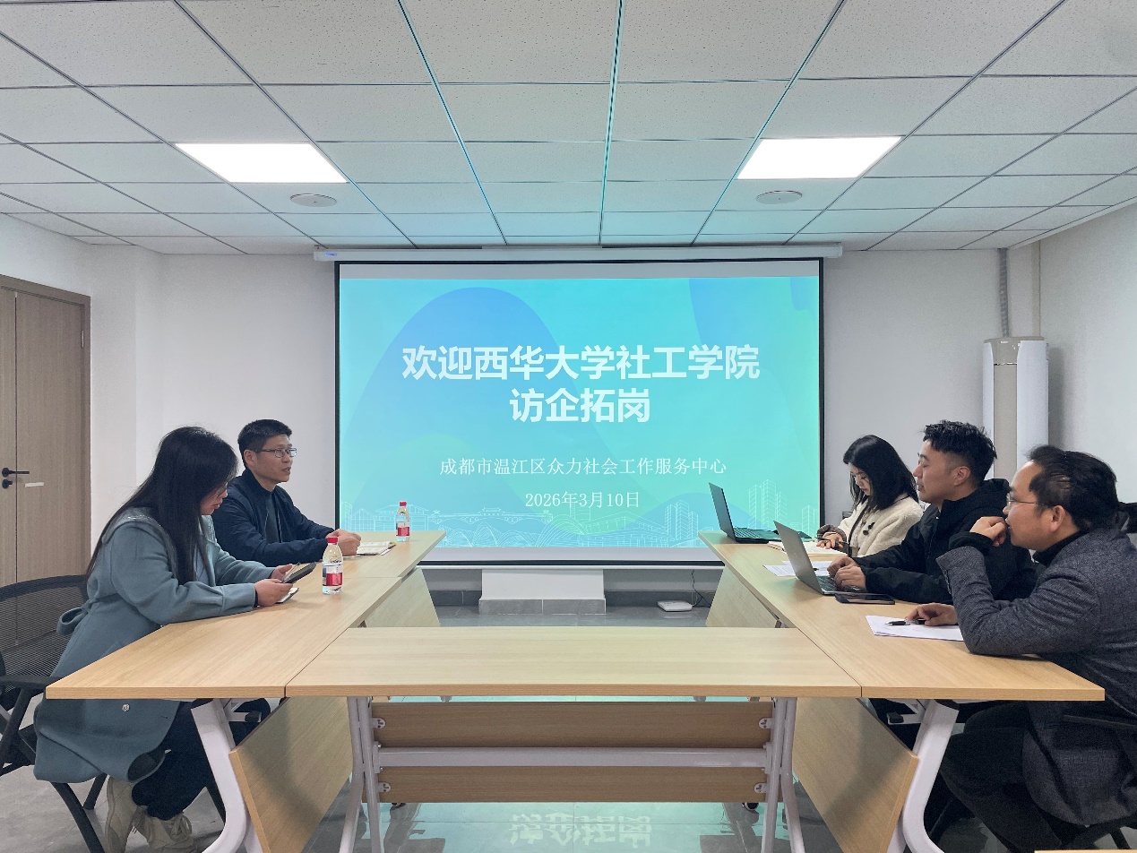 朱开强介绍了新津区社会工作支持中心的基本架构和主要功能,希望中心能够在课题研究、实践实习基地建设等方面与西华大学开展深度合作。田野介绍了众力社会工作服务中心的基本情况,分享了机构在成都市城乡社区可持续总体营造以及参与四川省养老服务体系建设的经验,表示将积极搭建就业对接平台,助力学生高质量就业。