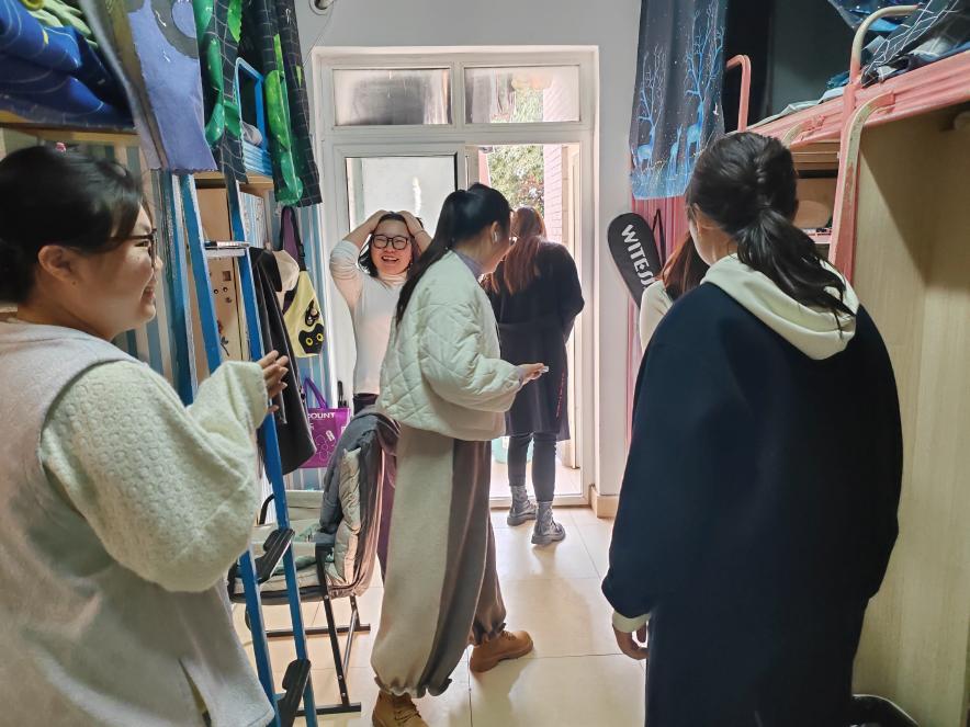 检查过程中,老师们坚持“严管与厚爱并重”,与学生亲切交流。一方面耐心宣讲水电安全规范,强调“人走电断”、规范使用水电设备的重要性,提升学生安全防范意识。另一方面倾听学生在住宿生活中的实际需求,针对寝室设施维护、环境优化等问题现场协调解决方案,传递学院对学生的关怀。