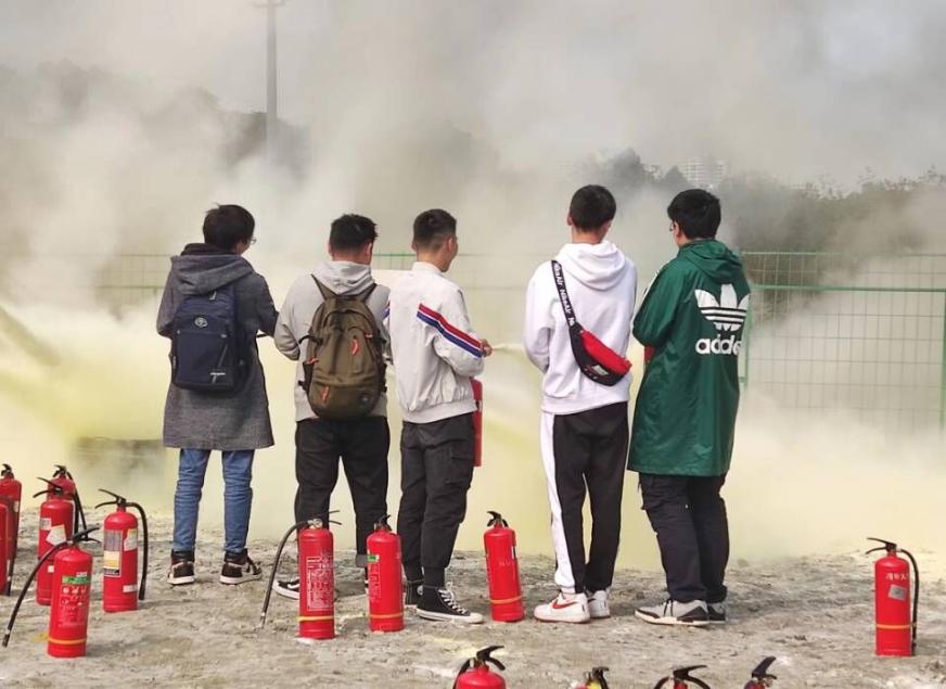 演练开始前,现场工作人员对此次演练进行统筹安排与周密部署,统一严格摆放灭火器、火盆,保卫科严格遵守消防安全条例。上午10时,消防演练正式开始。首先由工作人员对演练步骤、灭火器使用方法及注意事项进行了详细讲解,并对演练内容及任务做出了具体要求,紧接着由专业人员作出灭火示范。最后在指挥员点燃火堆并拉响警报器后,同学们五人一组进行灭火器操作,专心致志、动作规范,迅速用灭火器将火堆中的火种扑灭。