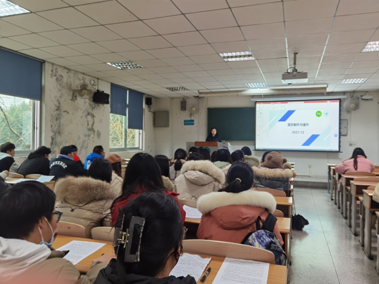 为提高学生的简历制作水平,激发学生的求职热情,提高学生就业能力2021年12月2日betway西汉姆联平台邀请魏山琳老师担任主讲人,大四全体同学、大三部分学生代表共计90余名同学积极到场聆听。