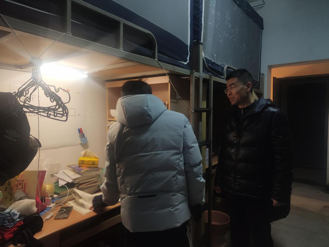 今年我院有4名学生留校过春节,其中一部分同学在校外勤工俭学,另一部分同学留校学习。在寝室走访慰问中,王相平与学生亲切交谈,详细了解了学生的学习、住宿、用餐以及家庭情况,勉励同学们安心学习,叮嘱部分假期勤工俭学的同学外出注意安全,做好个人疫情防护,有困难及时向学院反映,同时要与家长、老师随时保持联系。