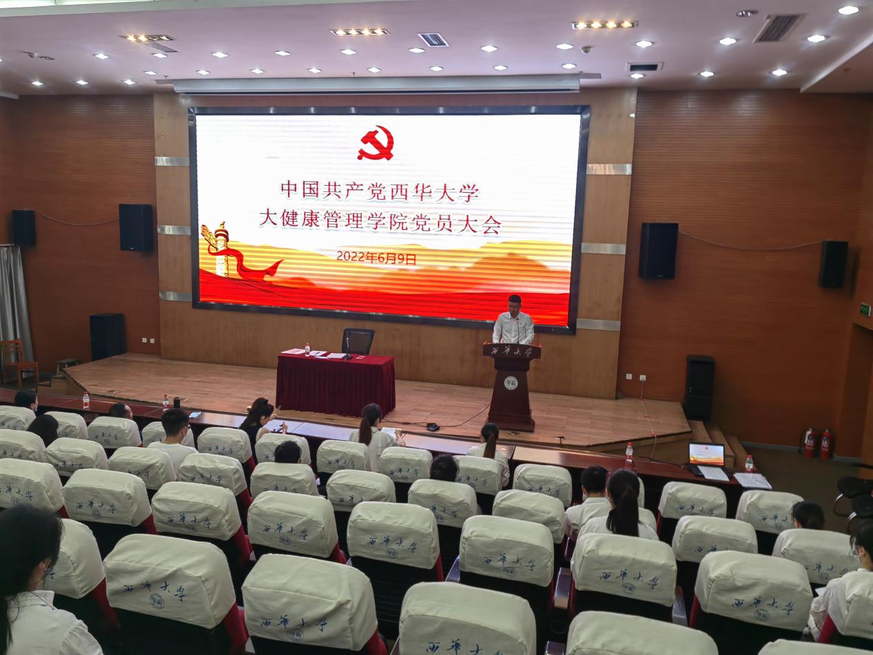 6月9日,中国共产党西华大学betway西汉姆联平台党员大会在图书馆报告二厅召开。大会由王相平同志主持,党委组织部副部长张静到会指导,大健康管理学院全体20名正式党员参会,3名预备党员列席会议。