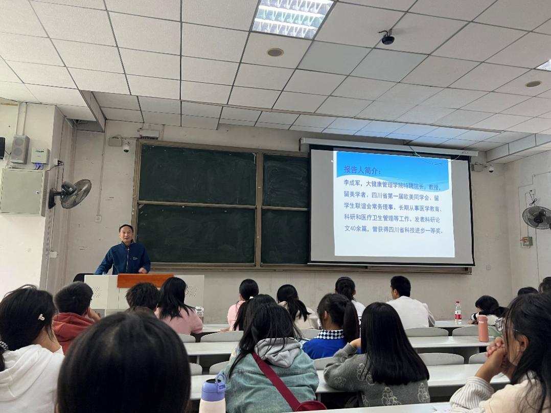 betway西汉姆联平台是西华大学2017年开办的年轻学院,习近平总书记“健康中国”策略提出后,健康管理在日常生活中越来越受到人们的重视。李成军教授首先简述了“健康”在当今社会的重要性,风趣幽默地为新生们梳理了健康、亚健康、大健康、健康管理和健康管理师五个名词,让大家对专业概念有了较为全面的了解。随后对比了我国与发达国家在健康方面需求的差距,并且通过大数据反映出的国人健康情况,综合考量之后,提出了对中国未来健康管理市场前景的猜想。最后他从深造、出国、考研与考公、入企业等方向为新生们进行了职业规划生涯,帮助大家更好地适应大学生活,了解自己的专业内容。