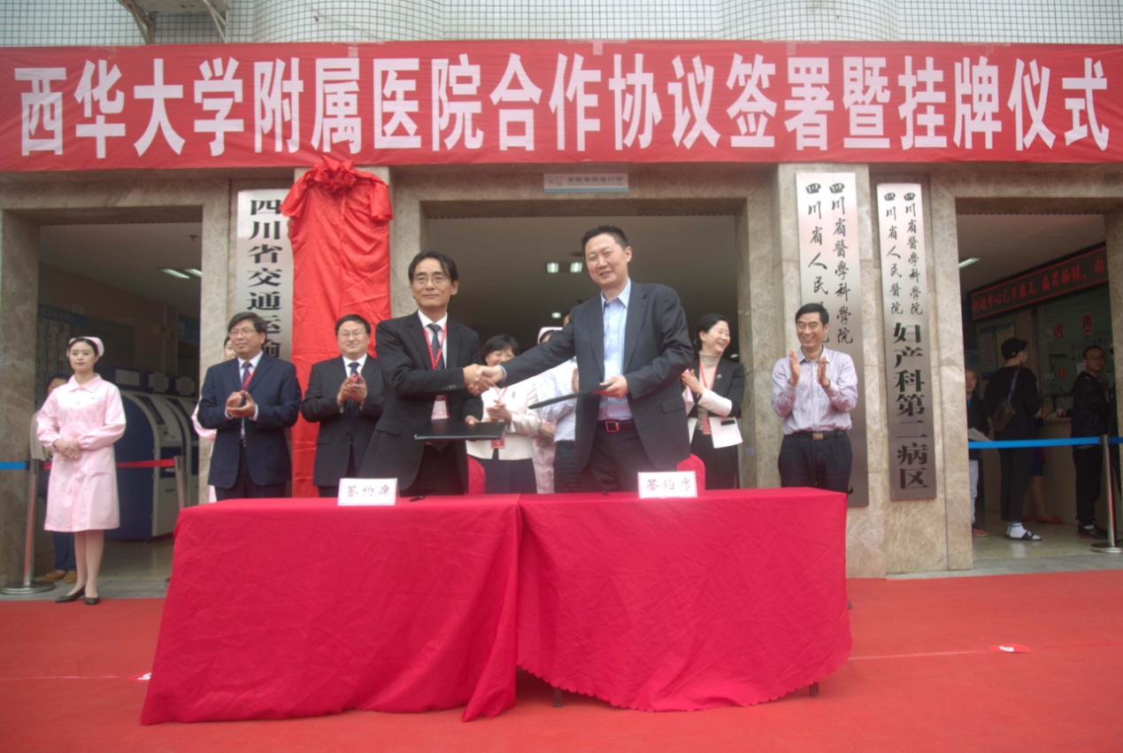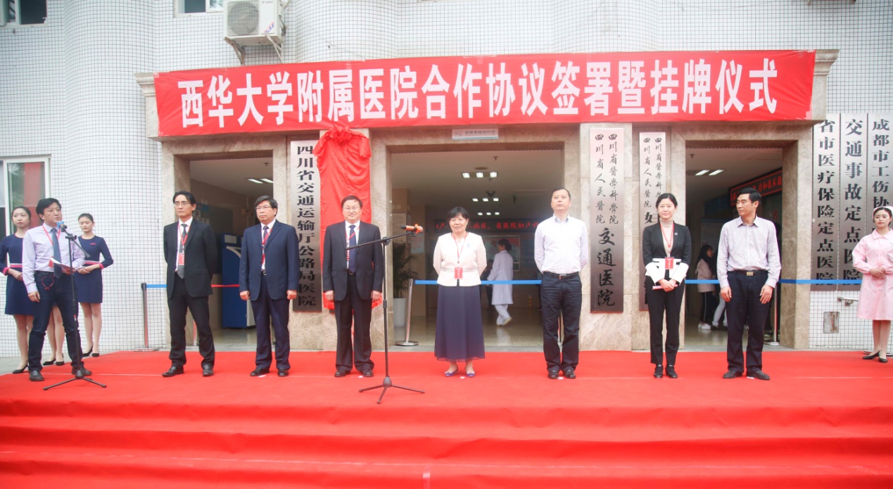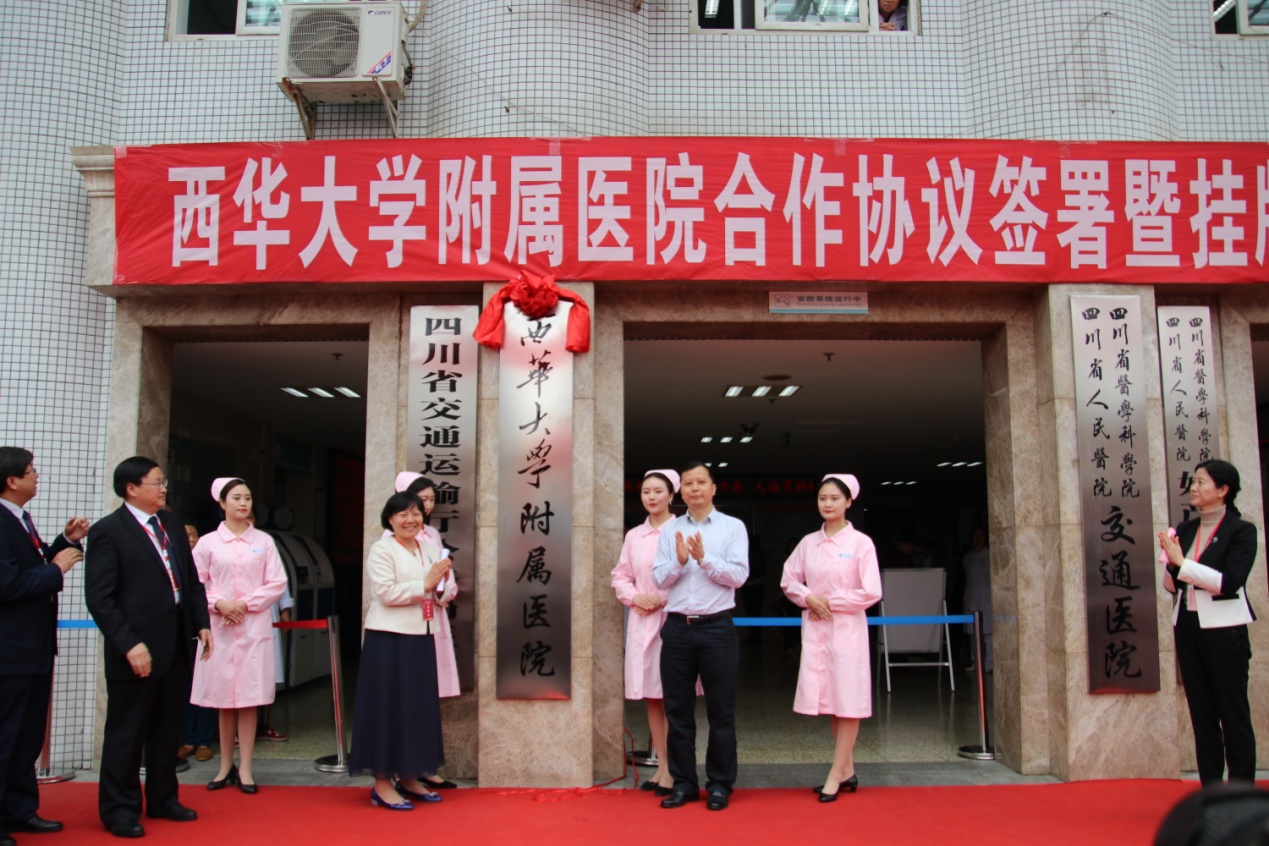 省交通运输厅副厅长宁坚、西华大学党委书记边慧敏共同为“西华大学附属医院”挂牌